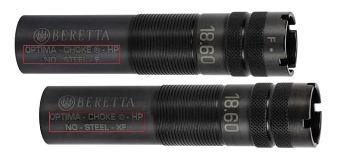 Chokes voor hagelgeweren zijn er in veel verschillende maten, om deze maat te bepalen vind je op de zijkant van je hagelgeweer vaak een markering. Zo staan er op de lopen van moderne Beretta de markering OB HP. Deze markering geeft aan de de lopen geschikt zijn i.c.m. Optima Choke HP Chokes die in verschillende uitvoeringen leverbaar zijn.